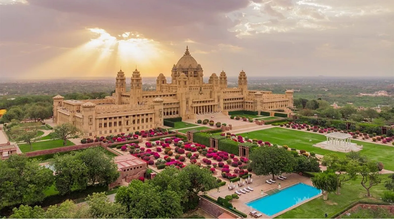 Towering above the Blue City, Umaid Bhawan Palace is known for its scale, privacy, and commanding presence. Guests often describe weddings here as immersive, with expansive lawns and interiors that naturally elevate large celebrations.